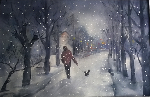 Keravan kirjaston ikkunagalleria, akvarelleja maaliskuu, lokakuu 2014, huhtikuu 2016